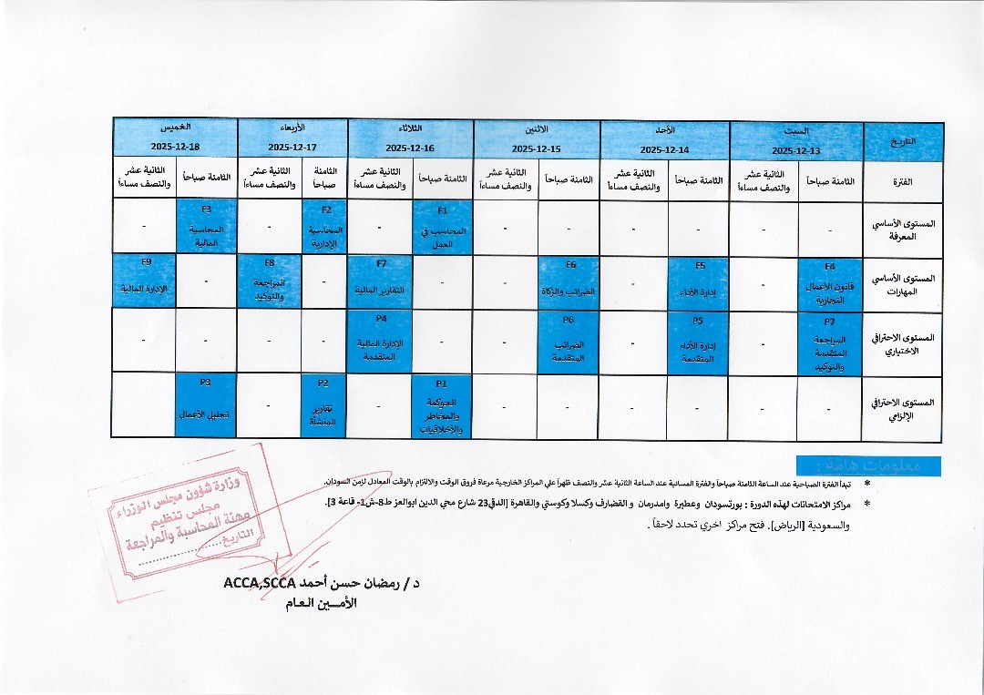 *يعلن مجلس تنظيم مهنة المحاسبة والمراجعة بالسودان عن مباشرة ورش العمل الإلكترونية عبر منصة Zoom، وذلك في إطار برامجه التدريبية المستمرة لتطوير قدرات المحاسبين والمراجعين. 🗓 مرفق لكم جدول الورش المقرر انعقادها خلال شهر سبتمبر. نرجو من السادة الأعضاء والمهتمين الحرص على المتابعة والمشاركة الفاعلة، وسيتم الإعلان عن روابط التسجيل والتفاصيل لكل ورشة عبر صفحتنا الرسمية. تابعونا لمزيد من التحديثات. ✍ المكتب الإعلامي مجلس تنظيم مهنة المحاسبة والمراجعة للإنضمام الرجاء إرسال الأسم رباعي عبر رابط الواتساب